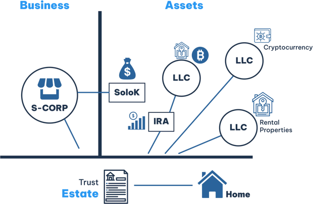 - Holdings & Investments (right side – LLCs for real estate, etc.)