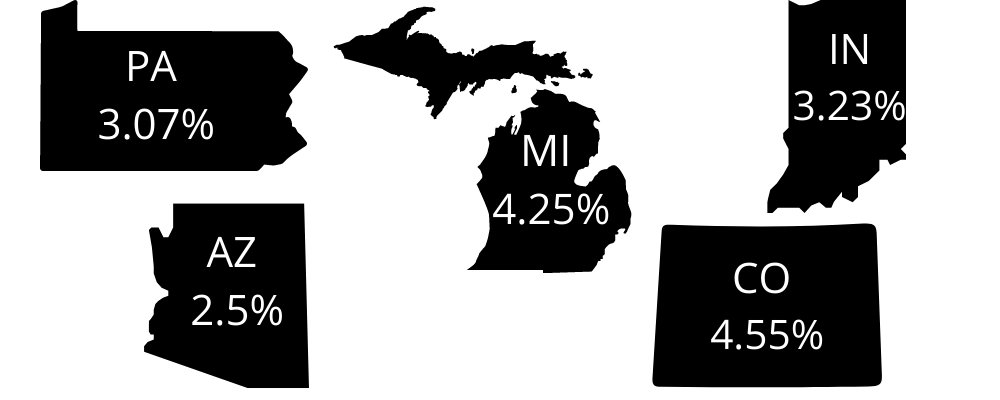 Pennslyvannia, Arizona, Michgan, Indiana, and Colorado.