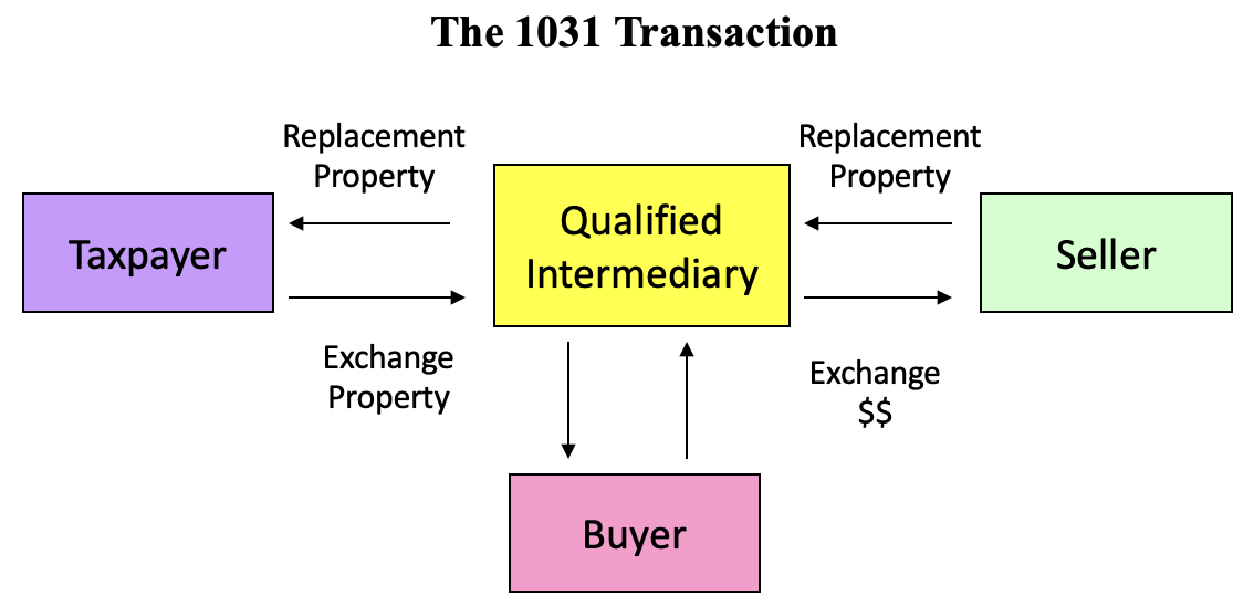 This means that an intermediary or accommodator will act like an escrow in the middle of the deal. They will hold your money from the sale until you find and purchase your new property. Here is what it looks like: